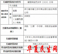 中国经济网北京12月22日讯银保监会官网今日披露的中国银保监会衢州监管分局行政处罚信息公开表(衢银保监罚决字〔2020〕21号)显示,浙江衢州衢江农村商业银行股份有限公司(以下...
