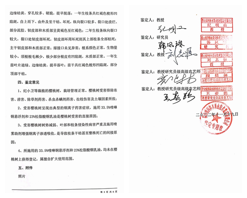 与此相反,令人感到不可思议的是,高兴利作为独审法官,却对没有任何机构盖章、没有任何专家签字承认的一张废纸十分认同。该判决书称:“2023年5月6日,大连市处置瓦房店樱桃死亡事件工作专班组织西北农林科技大学、北京市农林科学院、山东省农业科学院等单位7位专家组成专家组对樱桃树死亡原因开展研判,专家组根据现场考察情况、鉴定试验和测试报告,出具了《关于瓦房店市樱桃树死亡原因专家综合研判意见》(简称《研判意见》),研判结论为导致樱桃树枝条、根系、树干树皮受害症状的主要原因是由真菌病害引起。”高并据此判决李广军构成名誉侵权。目前,这份《研判意见》早已在网上被骂的狗血喷头,在多家媒体的报道中均能看到,是一个没有任何机构盖章承认,也没有任何专家签字认账的废纸,被广大果农和律师们认为是假证、伪证,是大连市农业农村局为了袒护大连殿龙出具的遮羞布!目前,受害的广大果农还在不断的维权,不断的要求严惩大连市农业局相关官员。