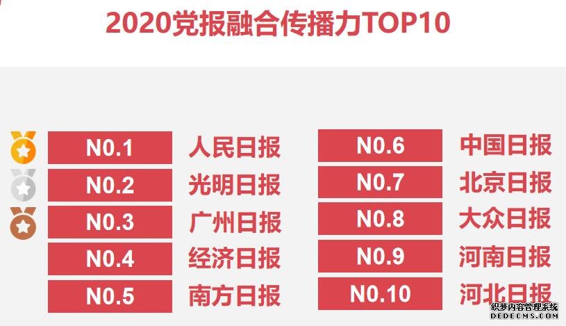 根据党报在纸报、网站、微博、微信、自有客户端、入驻客户端及短视频平台的内容生产及传播情况进行综合评估,党报融合传播力综合排名前十及各渠道传播力排名前二十的名单请看图。