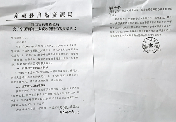 宁国明接到信访答复一等又是两年多,西关村12号建筑“非法”问题一直没有解决,也没有职能部门调查处理。2023年5月10日,相关媒体就宁国明反映的情况以及襄垣县自然资源局信访答复意见专程前往襄垣县相关部门了解。