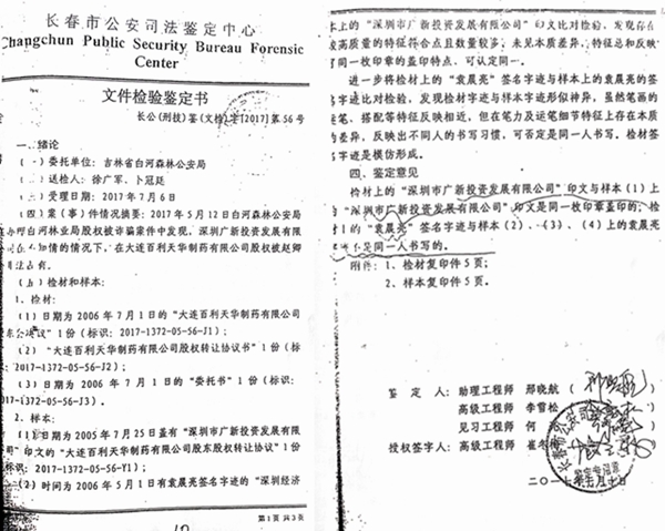 (3)我们多次向大连市中级法院反映陈茂芝债权1亿3千万元、广东拓达医药有限公司1亿多元的债务系虚假债权并提供相应的线索,同时提供公安鉴定报告证明赵卿全持有股权是虚假的。然而大连市中级法院对赵卿全虚构的多笔债权的真实性不予审查。