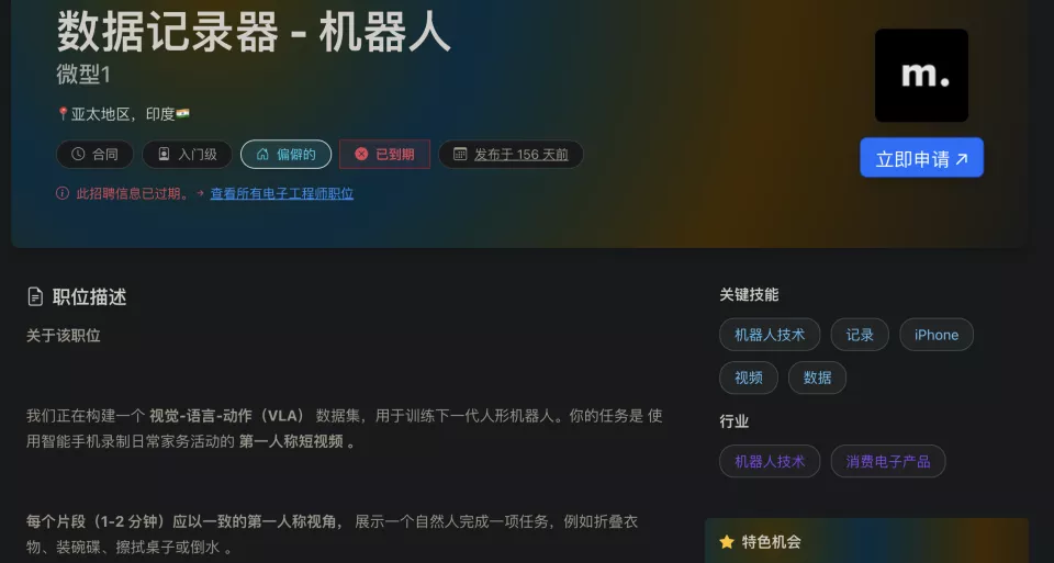 历史正在翻开新的一页。数据采集的规模快速扩大,已经形成了一条完整的产业链。上游是穿戴设备的硬件厂商,做头戴摄像头、腕部追踪器、力感应手套;中游是数采方案和数据清洗服务商,帮客户设计采集流程、过滤低质量数据、把原始视频处理成模型可以直接消化的格式;下游是购买数据来训练模型的具身智能公司,多家科技巨头都在加速入场。