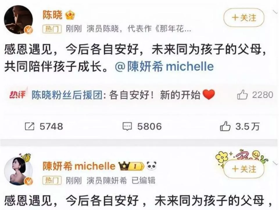 转机出现在2025年2月18日,陈晓和陈妍希同时在微博发文,官宣离婚,声明“感恩遇见,各自安好”。