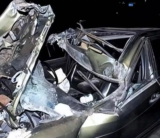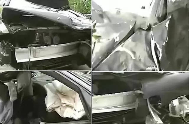 车子马上就扭曲变形,钢梁直接朝着驾驶座砸过去。